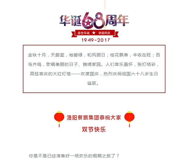 十月一千萬別離開洛陽!這份洛陽游玩超級攻略省錢又省時! 發(fā)布時間:2017-10-01來源:點擊:2472 以上信息來源于洛陽餐旅集團官網(wǎng):m.jqqty.cn 分享到:0 用手機看 拍下二維碼,信息隨身看 試試用微信掃一掃,在你手機上繼續(xù)觀看此頁面。 上一篇:“餐旅杯”河南省餐飲飯店三項大賽洛陽選拔賽拉開序幕 下一篇:河南省收藏家協(xié)會洛陽辦事處落戶喜慶文化博物館(籌)