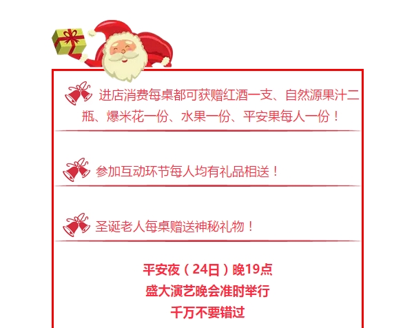High翻平安夜 狂歡圣誕節(jié)丨盡在老城宴天下 發(fā)布時(shí)間:2017-12-08來(lái)源:點(diǎn)擊:2359 洛陽(yáng)餐旅 宴會(huì)專家全國(guó)預(yù)訂客服熱線:400-616-3939微信號(hào):hacyly股票代碼:836977長(zhǎng)按二維碼識(shí)別后添加關(guān)注以上信息來(lái)源于洛陽(yáng)餐旅集團(tuán)官網(wǎng):m.jqqty.cn 分享到:0 用手機(jī)看 拍下二維碼,信息隨身看 試試用微信掃一掃,在你手機(jī)上繼續(xù)觀看此頁(yè)面。 上一篇:中華古玩城聯(lián)盟秘書(shū)長(zhǎng)王佳等一行參觀考察旅發(fā)集團(tuán)旗下華夏喜慶文化博物館。 下一篇:High翻平安夜 狂歡圣誕節(jié)丨盡在幸福禮堂
