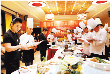 由集團(tuán)公司董事長申靈杰、集團(tuán)公司董事、副總經(jīng)理劉雅芳,工會主席柴省衛(wèi),行政副總廚梁進(jìn)球等組成的評委會,針對參賽的25位廚師烹制的39道佳肴進(jìn)行現(xiàn)場打分,從中選出***菜品作為貫標(biāo)菜。期間,評委把這39道菜在酒店的銷量,質(zhì)量跟蹤卡的反饋信息,以及現(xiàn)場打分情況作為綜合評選依據(jù),從菜品的色、香、味、形、皿等各個方面,層層把關(guān),并邀請餐飲業(yè)專家對入圍菜品進(jìn)行點(diǎn)評。