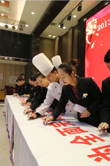 農(nóng)歷新年伊始,全聚德大酒店、紅子雞大酒店、宴天下大酒店新區(qū)店、湘鄂匯大酒店、宴天下大酒店老城店分別舉行員儀式,表示要為實現(xiàn)集團和本公司2013年目標(biāo)而努力奮斗。
