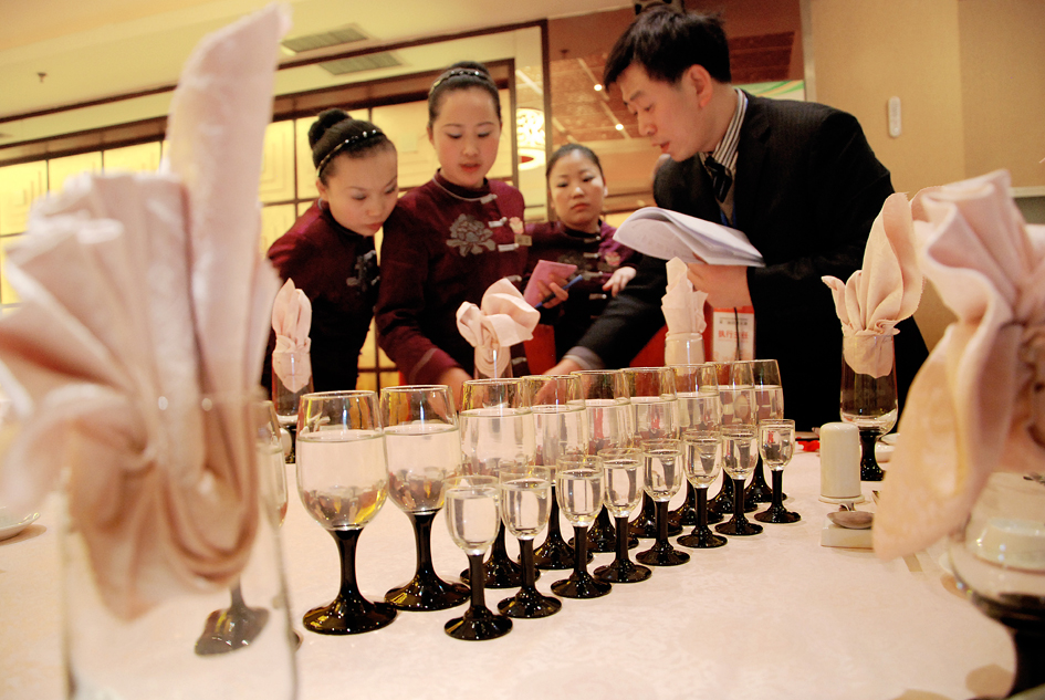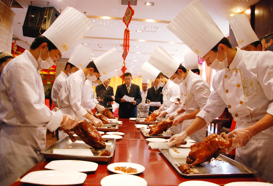 17日至21日為餐廳技能服務(wù)展示。其中17日至19日進(jìn)行的是中餐宴會鋪臺、斟酒、折口布花項目的比賽;20日進(jìn)行全聚德烤鴨、紅子雞、宴天下歷史介紹;21日進(jìn)行片鴨比賽。